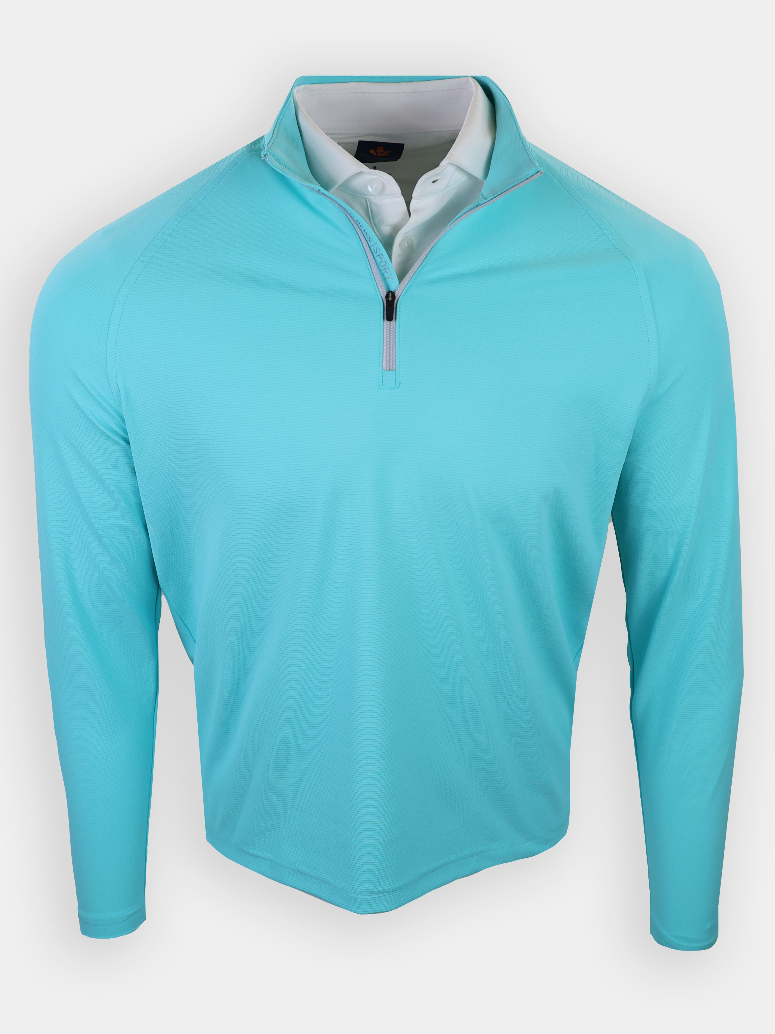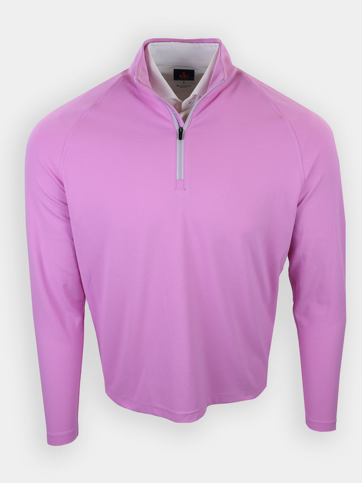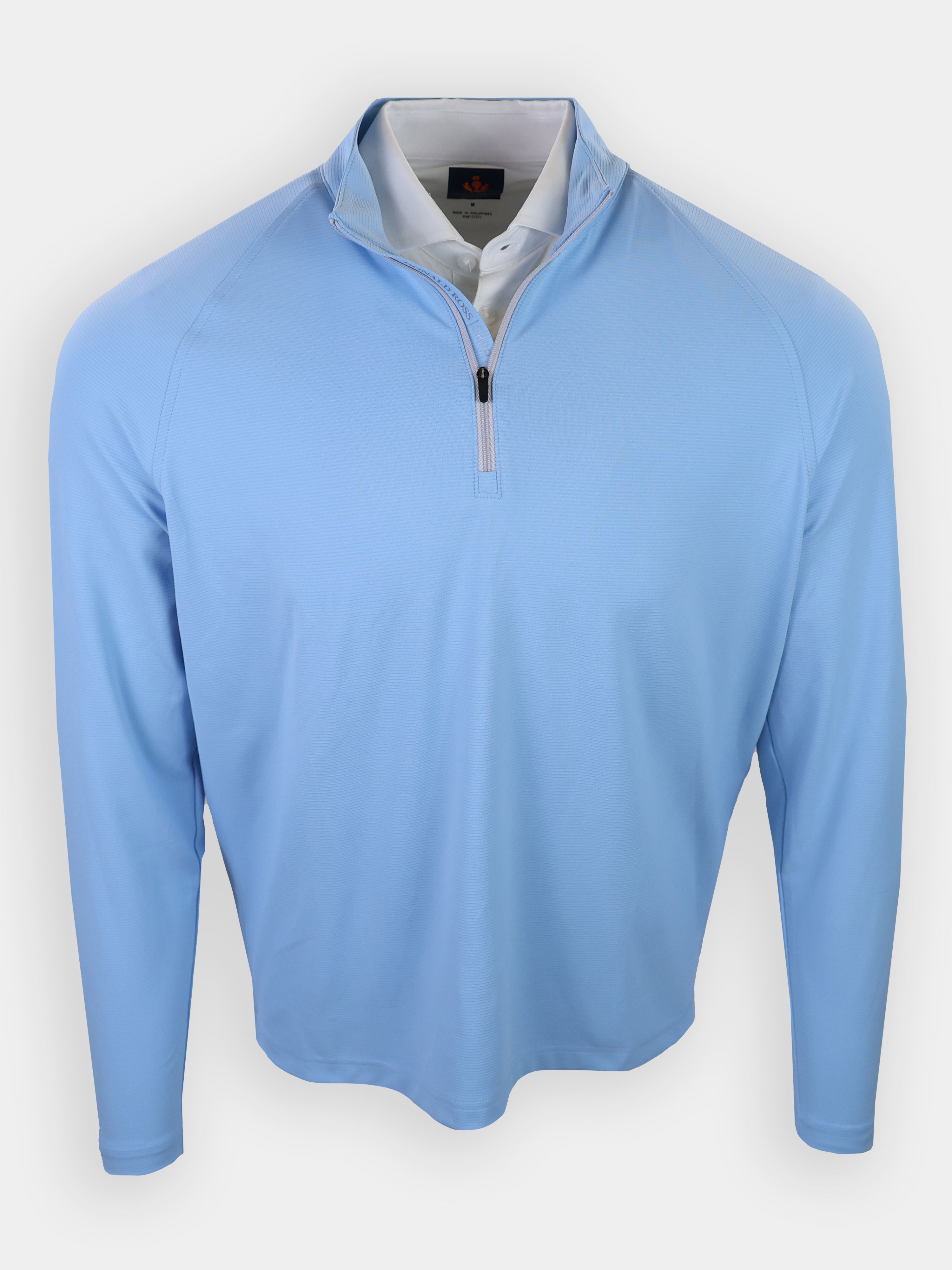 The Niall Ribbed Quarter Zip Pullover by Donald Ross Sportswear offers a unique fabric pattern.