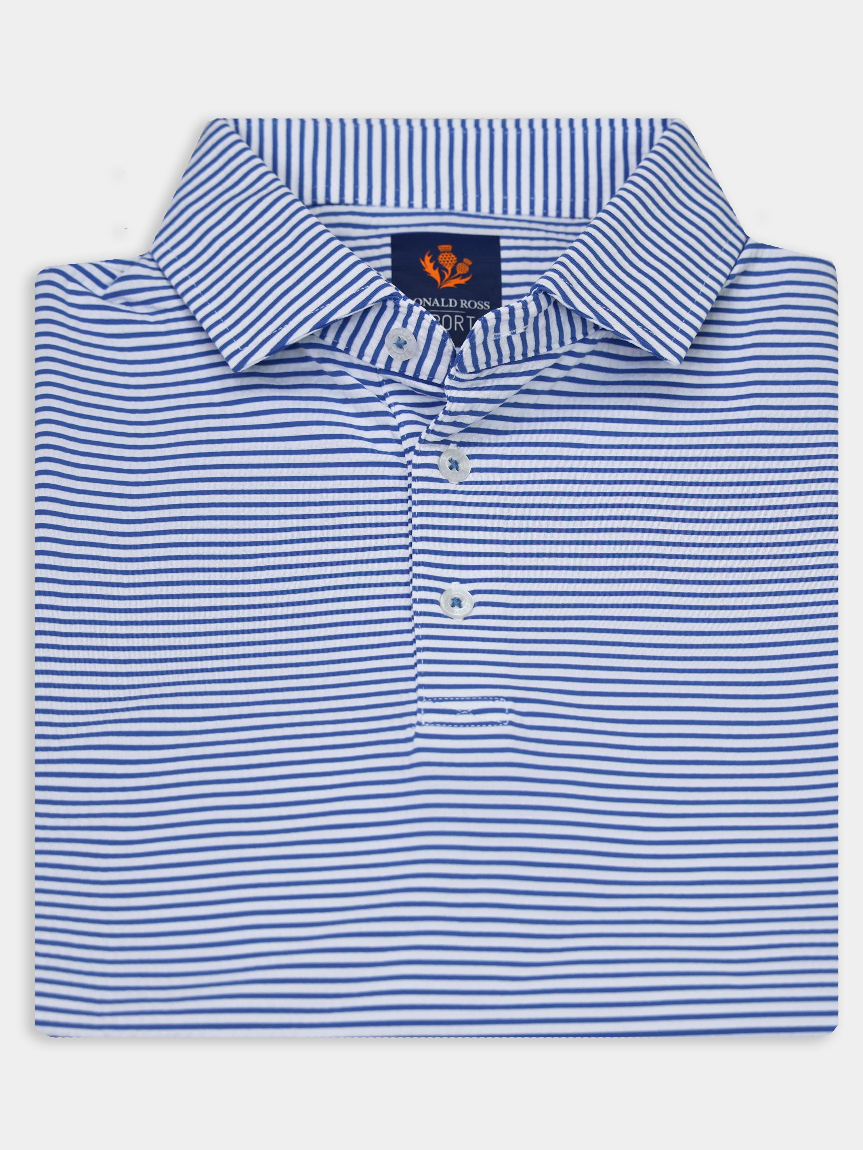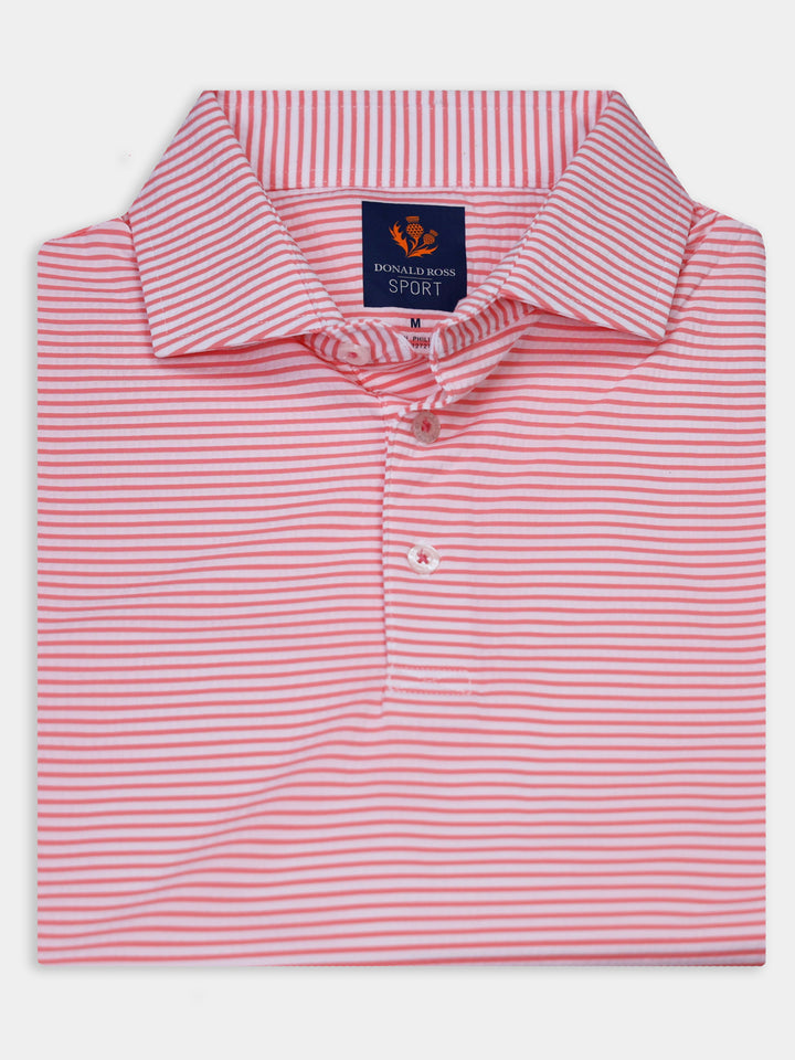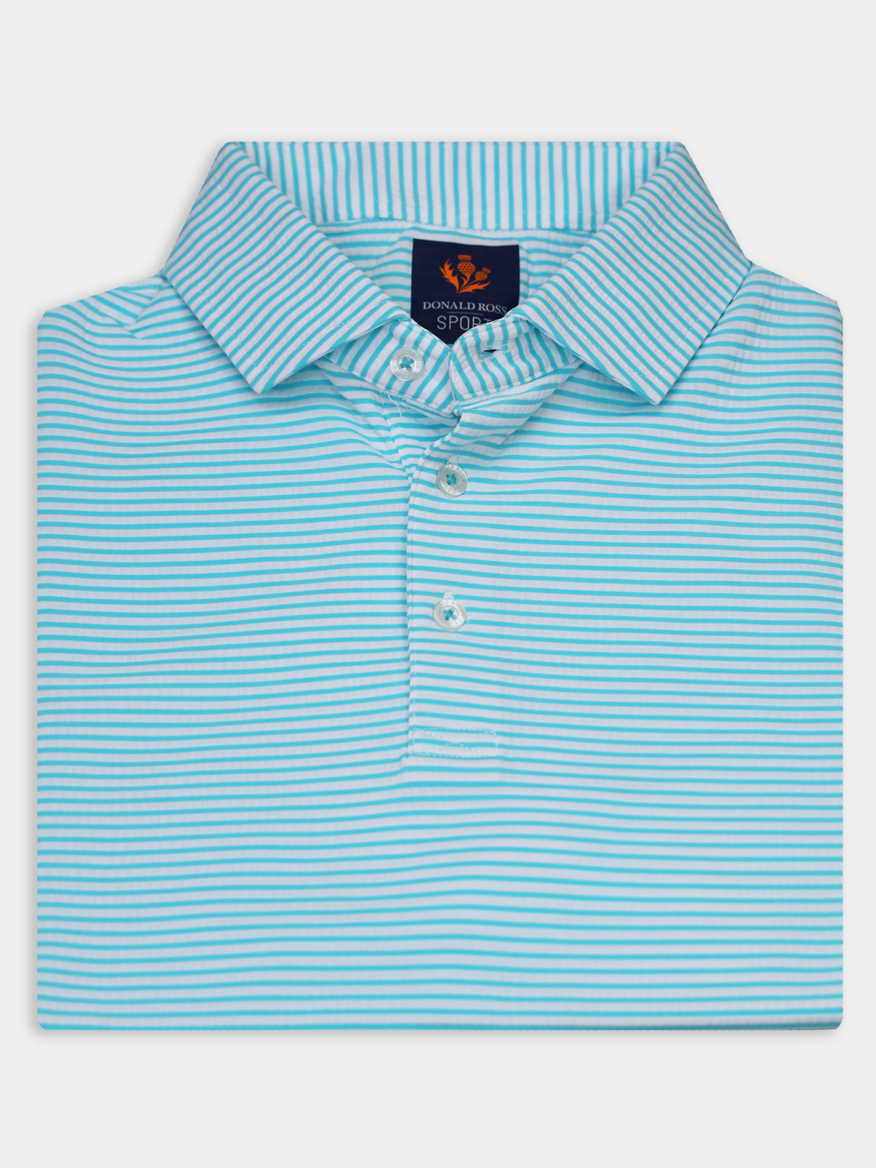 The Owen Striped Patriotic Polo by Donald Ross Sportswear stands out with its bold design. Made from a seersucker fabric, this polo keeps you cool and dry with its moisture-wicking properties.