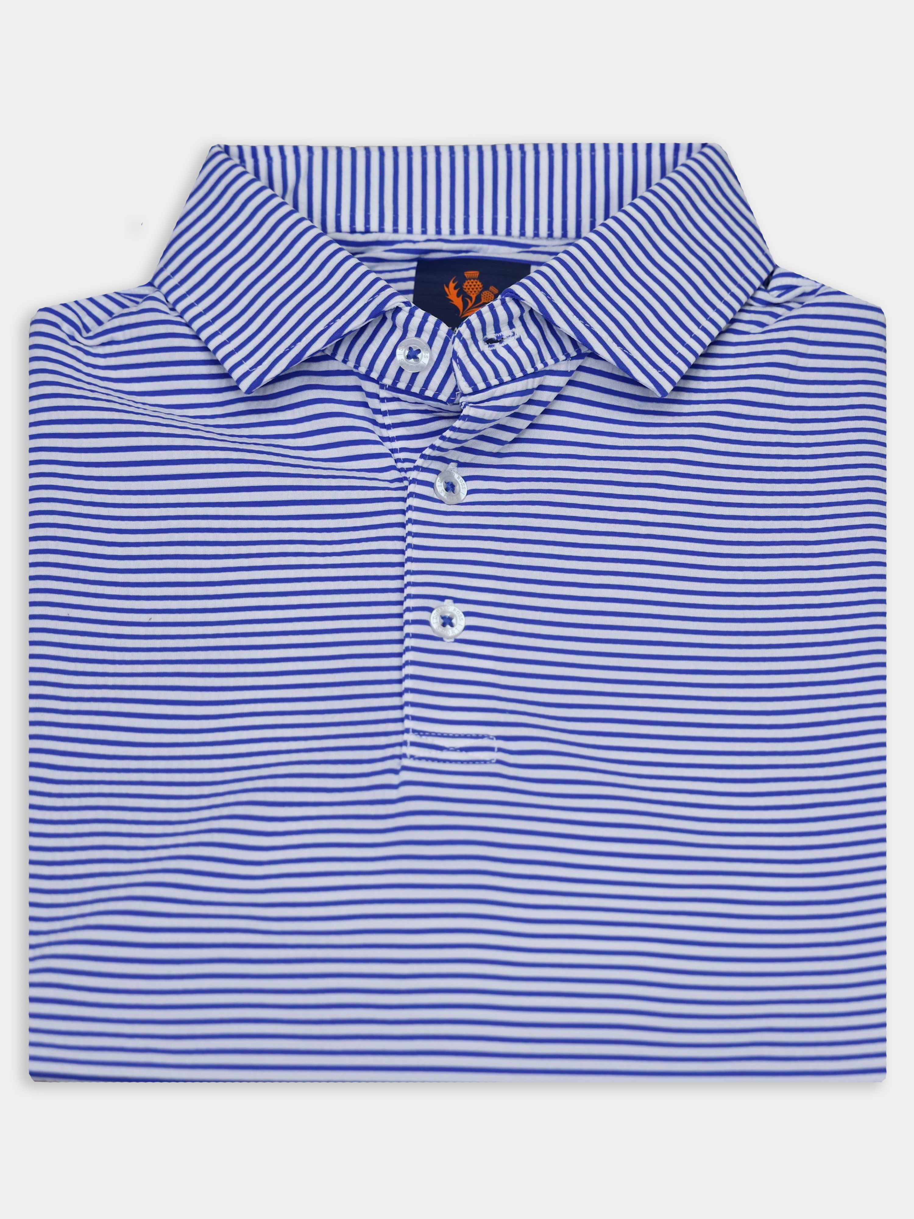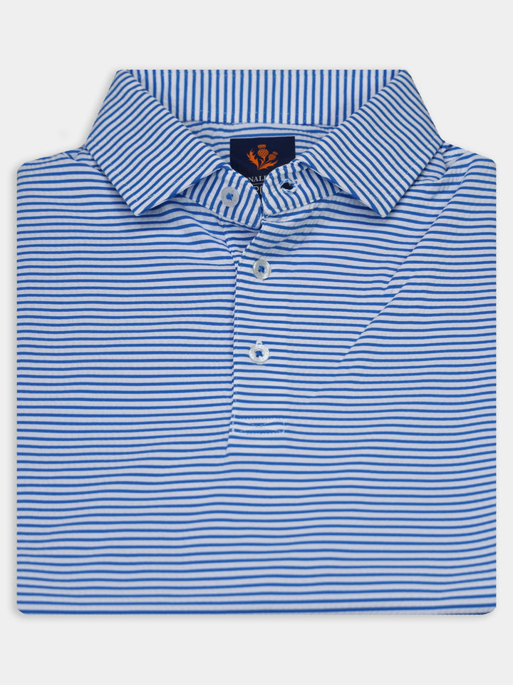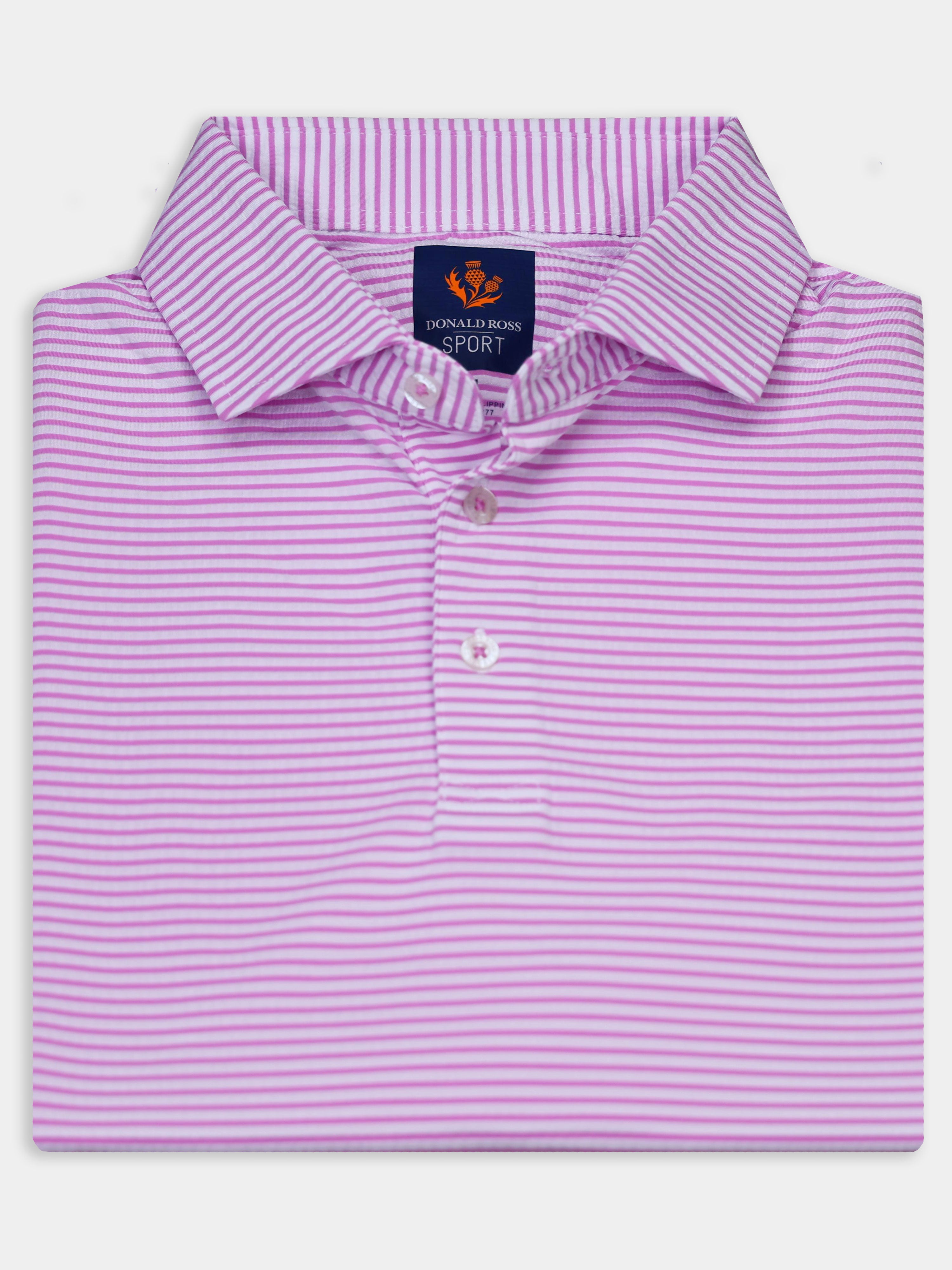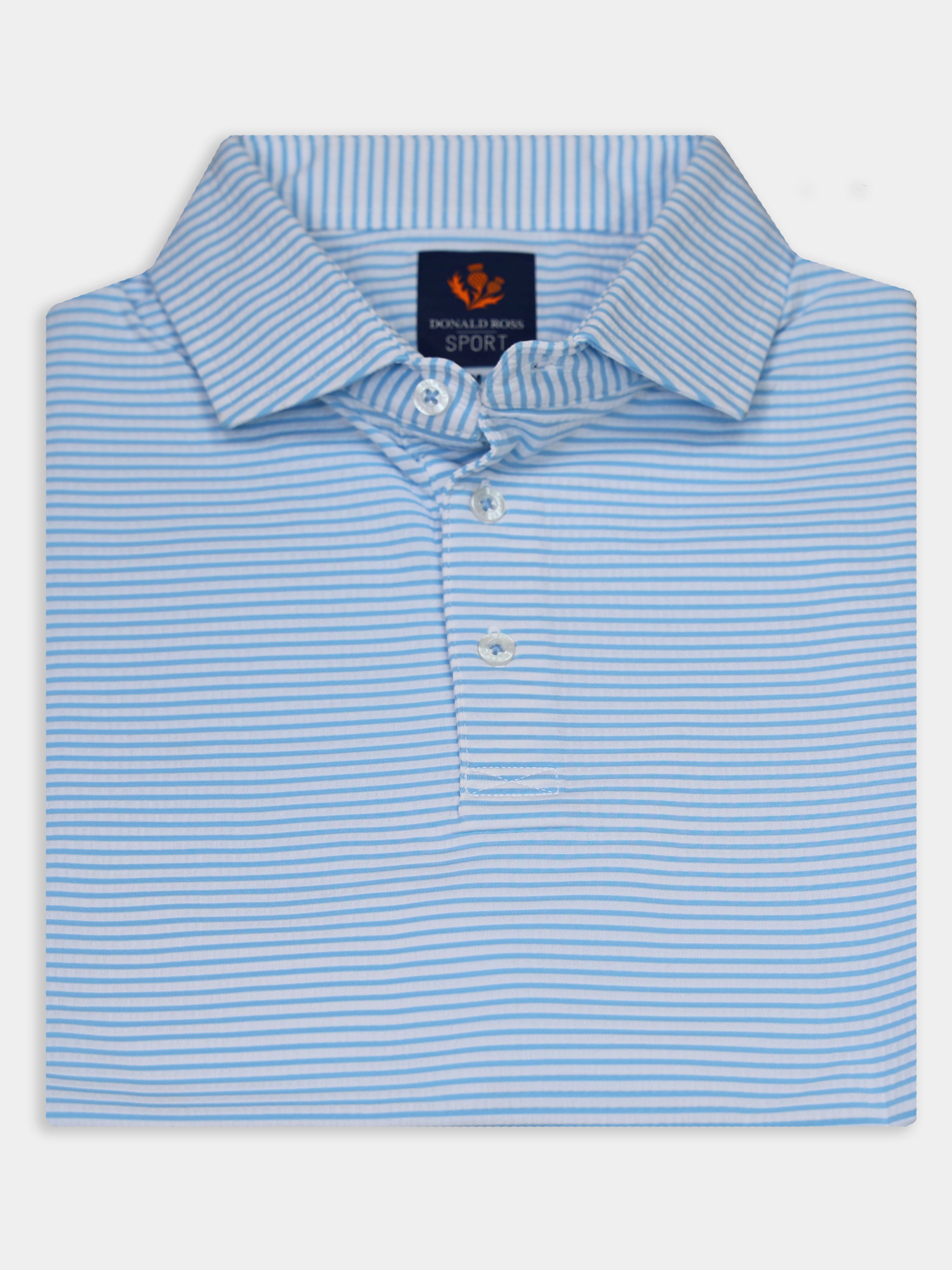 The Owen Striped Patriotic Polo by Donald Ross Sportswear stands out with its bold design. Made from a seersucker fabric, this polo keeps you cool and dry with its moisture-wicking properties.