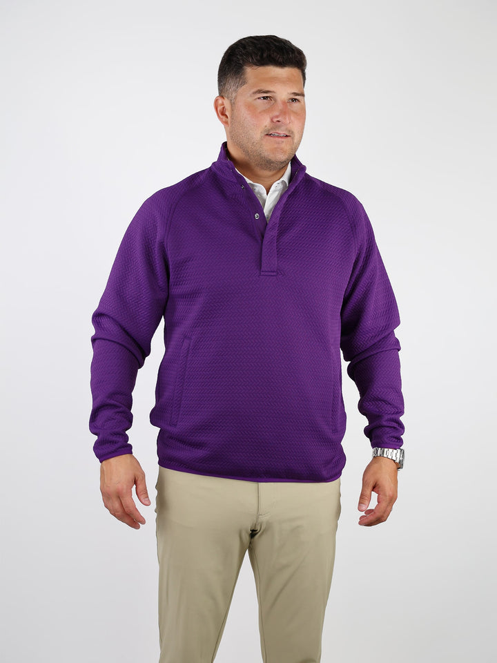 The Lanark pullover by Donald Ross Sportswear is a performance outerwear piece. This textured jacquard pullover is available in four colors.