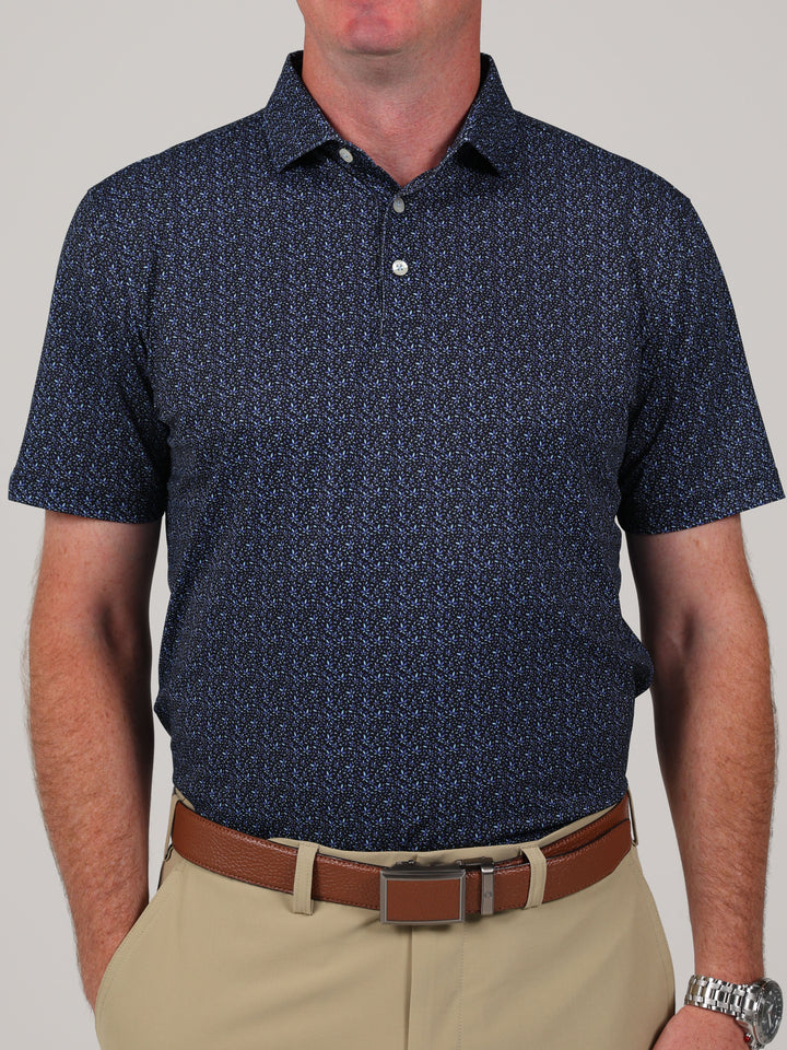 Description : Elevate your golf game with the Classic Fit Simon Golf Polo, designed for all-day comfort, timeless style, and performance on and off the course. Crafted from a premium 91% polyester / 9% spandex blend in a breathable baby pique knit, this short-sleeve golf polo offers lightweight stretch and moisture-wicking comfort for every swing. The Classic Fit features a relaxed cut with extra room in the sleeves and torso, making it perfect for golfers who prefer a more traditional silhouette with enhanced mobility and longer coverage. Finished with a three-button placket, a finely detailed collar, and UPF 50+ sun protection, this floral print golf shirt blends style and function with ease. Whether you're teeing off, heading to the clubhouse, or simply enjoying a casual weekend, this men’s performance golf polo delivers lifelong satisfaction in every wear.