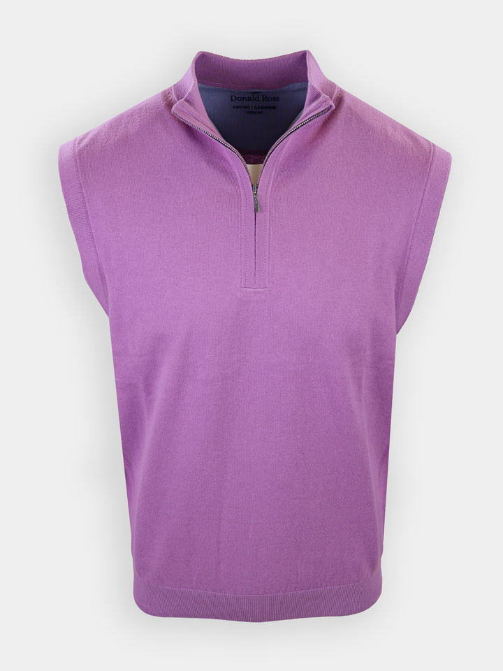 Elevate your everyday wardrobe with this solid sweater vest, crafted from a soft and luxurious cotton-cashmere blend for exceptional comfort and breathability. Designed with a refined saddle shoulder construction, it offers a flattering fit and enhanced ease of movement. The self-fabric ribbed waistband provide a clean, structured finish while maintaining a timeless silhouette. Perfect for layering or wearing on its own, this premium sweater vest delivers effortless style, durability, and all-season versatility.