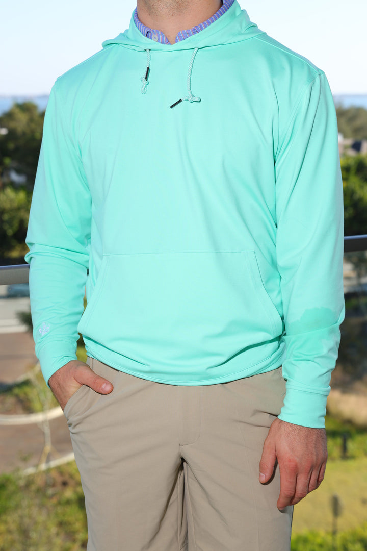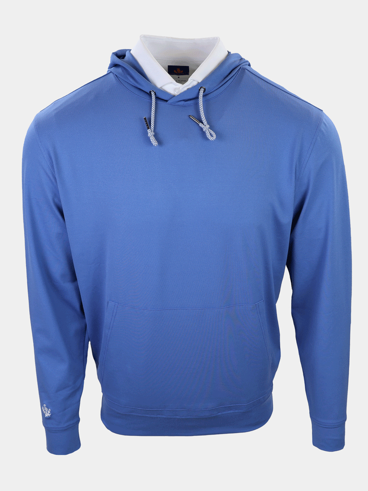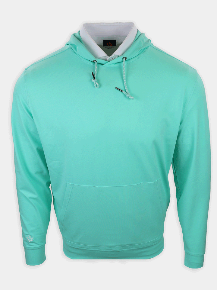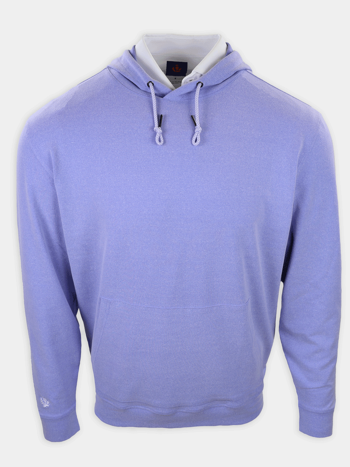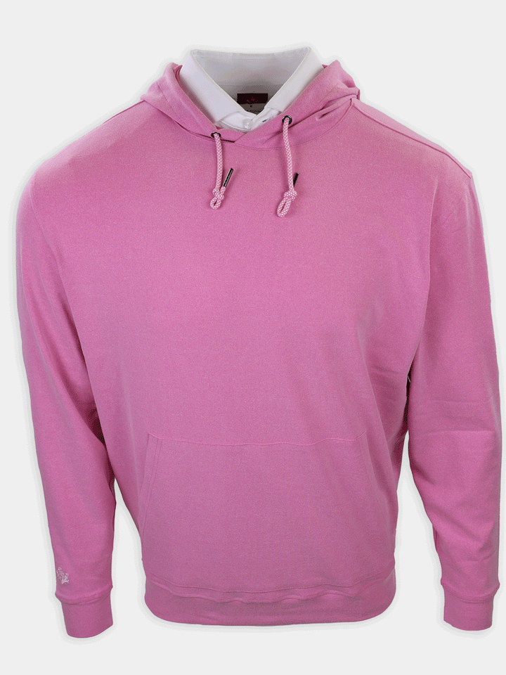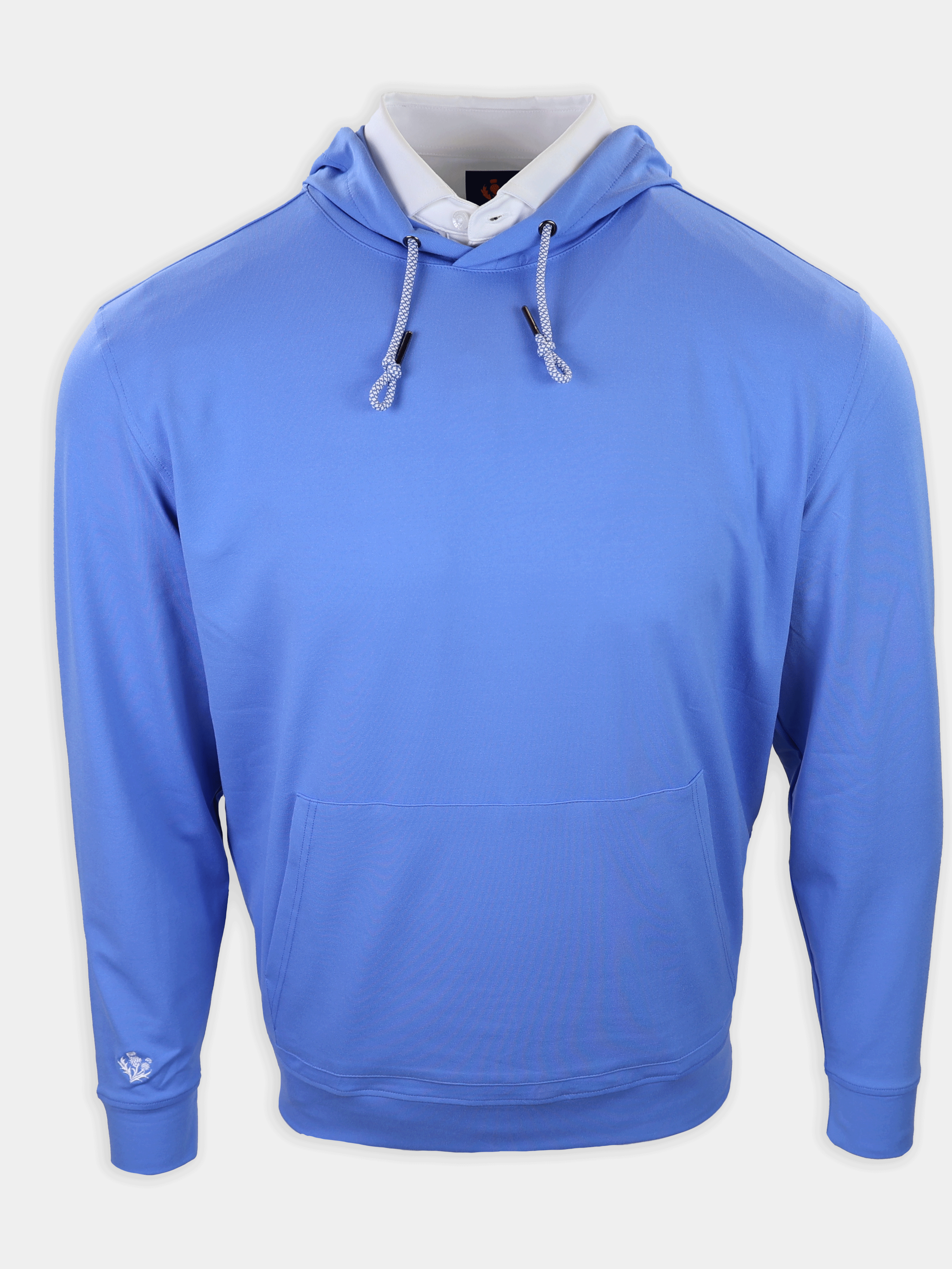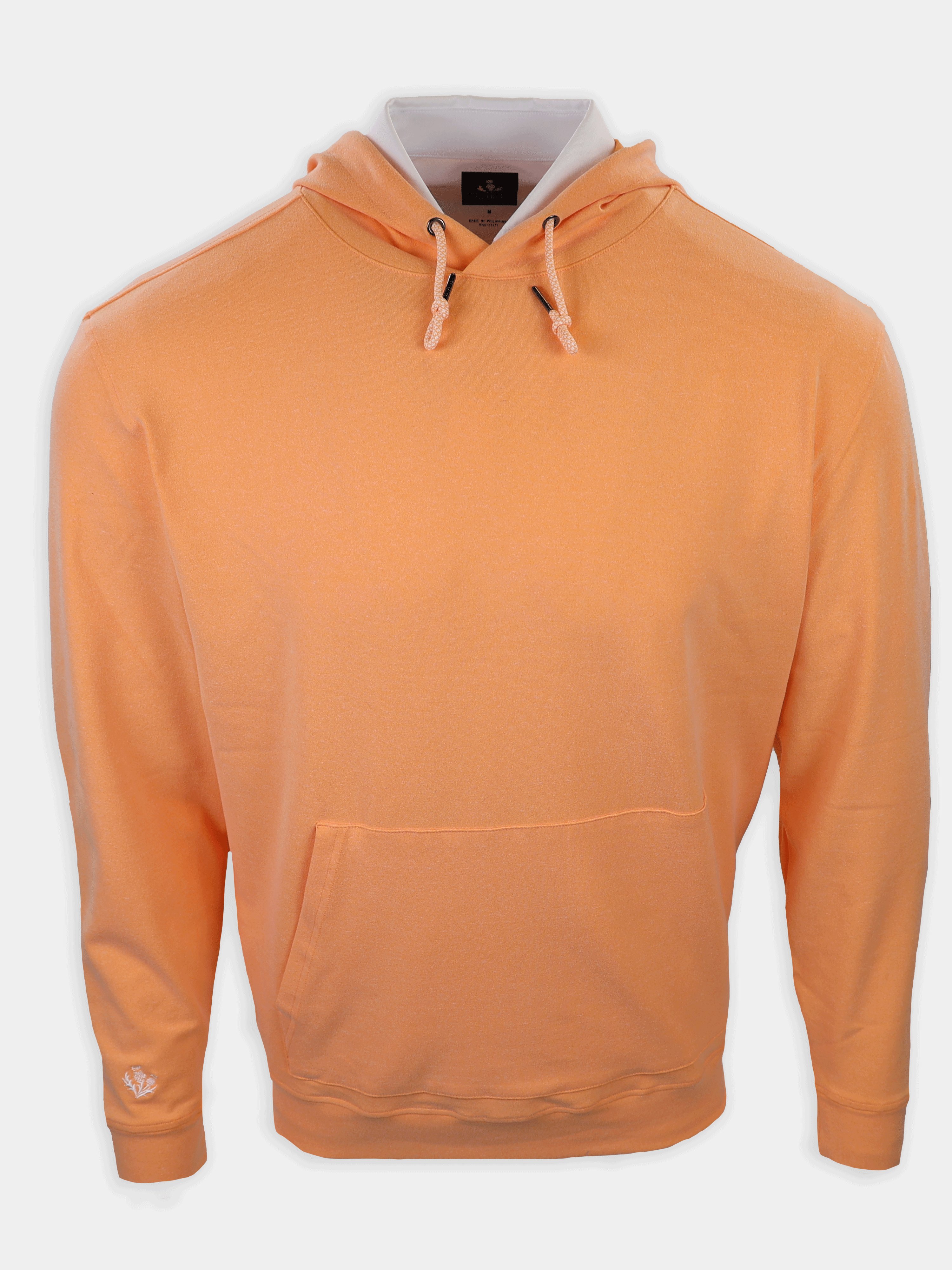 A modern essential for life at the club and beyond, this long sleeve hoodie pullover is crafted from our signature performance fleece for exceptional comfort and warmth. Designed with color-and-white drawcords, a clean kangaroo pocket, and set-in shoulders for a refined silhouette. Finished with self-fabric banded cuffs and hem, plus an embroidered thistle logo at the right wrist for a subtle, elevated golf-inspired detail.