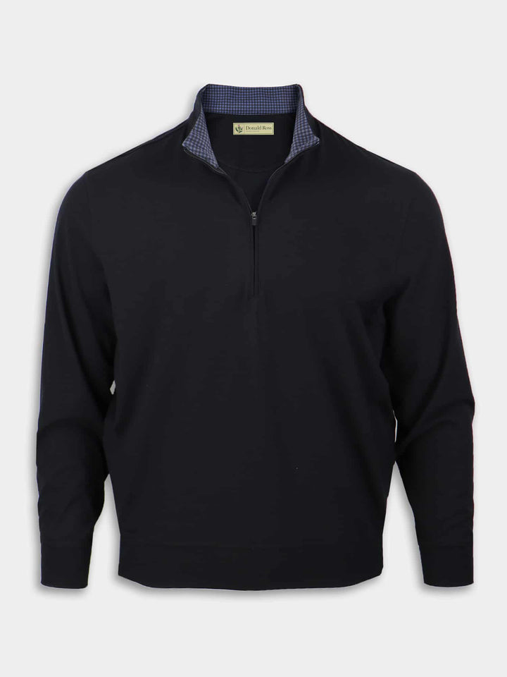 Fabric: 94% Moisture Wicking Micro-Polyester 6% Spandex • Deep 1/2 zipper for easy on-off • Gingham tonal print inside collar • Soft, brushed surface with cashmere-like hand • Smooth interior for non-stick wear • Optimal stretch • Lightweight & breathable warmth for comfortable layering • Self banded bottom opening • Lifelong satisfactionCare