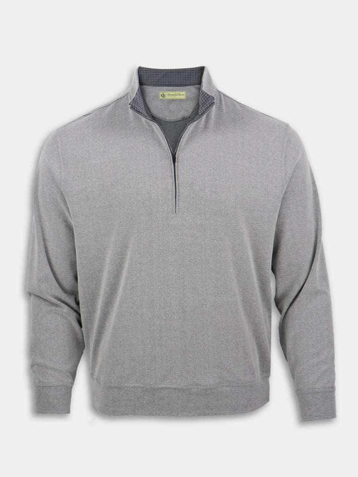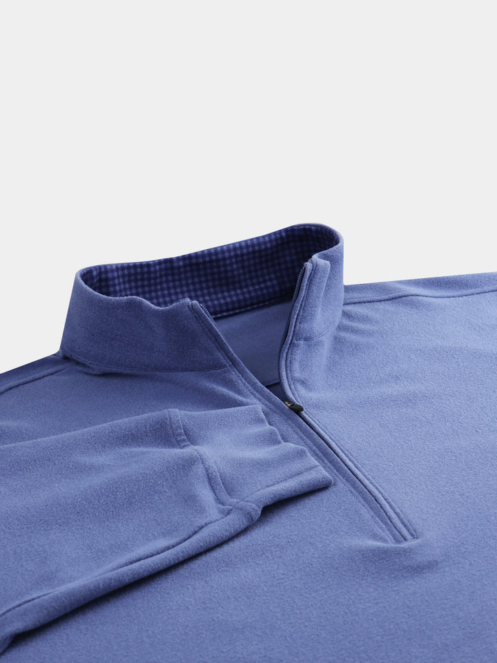 The hand feel of cashmere with the performance of modern micro-polyester, our Year-Rounder fleece checks all the boxes! Ultra-lightweight with soft brushed exterior and smooth breathable interior truly is the best of both worlds. Warmth without weight, easy care performance, and effortless wear-ability qualifies this as your next wardrobe staple. Designed for golf, this pullover model features a gingham print inside the collar, four-way stretch, and self-banded bottom.
